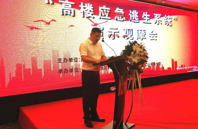 上海市消防協(xié)會秘書長黃鐵軍在會上介紹說:扶手懸掛逃生器是一款研發(fā)的先進(jìn)逃生系統(tǒng),該產(chǎn)品豐富了我國逃生產(chǎn)品的種類,在發(fā)生火災(zāi)、地震等險情時,可以幫助人員快速安全逃生。