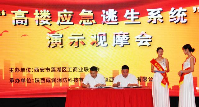 2018年8月我司承辦的“高樓應(yīng)急安全逃生系統(tǒng)”全國首屆推廣會如期舉行,該系統(tǒng)旨在解決“高樓如何快速安全逃生”這項世界課題。參加此次推廣會的單位有:上海市消防支隊、上海市消防協(xié)會、陜西省安監(jiān)局、陜西省消防總隊、陜西省消防協(xié)會、兵器工業(yè)衛(wèi)生研究所安全技術(shù)研究中心、深證市公共安全研究所、西安市安監(jiān)局、西安市消防支隊、咸陽市安監(jiān)局、咸陽市消防支隊、西安市蓮湖區(qū)委。區(qū)政府、工商業(yè)聯(lián)合會等與會單位、以及碧桂園、綠地集團(tuán)、海亮地產(chǎn)、天朗集團(tuán)、聚成物業(yè)等20多家地產(chǎn)企業(yè)。現(xiàn)場反響熱烈,30多家知名媒體相繼報道。此次會議3家地產(chǎn)企業(yè)現(xiàn)場與我司簽訂戰(zhàn)略合作協(xié)議,在接下來參觀位于西安市蓮湖區(qū)華府西城港灣小區(qū)的“高樓應(yīng)急安全逃生系統(tǒng)”樣板項目時,省市級消防有關(guān)領(lǐng)導(dǎo)人強(qiáng)烈要求親自做現(xiàn)場滑行測試,并給予“高樓應(yīng)急安全逃生系統(tǒng)”高度評價。目前,此項目在上海市奉賢區(qū)陽光家園、西安市海亮新英里、華府西城港灣投入使用并在全國推廣。