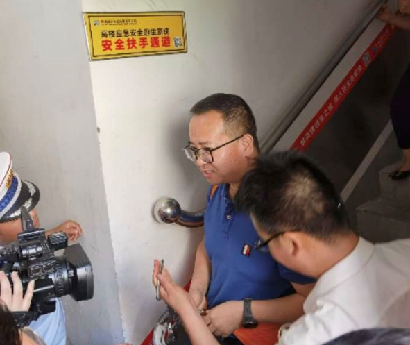 在西咸新區灃西新城,考察組現場觀摩了高樓應急逃生演練,聽取了由灃西新城引進的科技企業陜西咸潤實業發展有限公司研發的“高樓應急安全逃生智聯系統”項目介紹和應用現狀,并現場隨機挑選了幾名居民,模擬從30層到1層分別進行樓梯逃生和使用逃生系統速度對比試驗,逃生系統優勢明顯。同時,一位考察組人員經過現場短暫培訓后親身體驗,沿著扶手順利地下滑到一層,剎車、轉彎每個操作都很平穩、操作簡單,動作熟練。