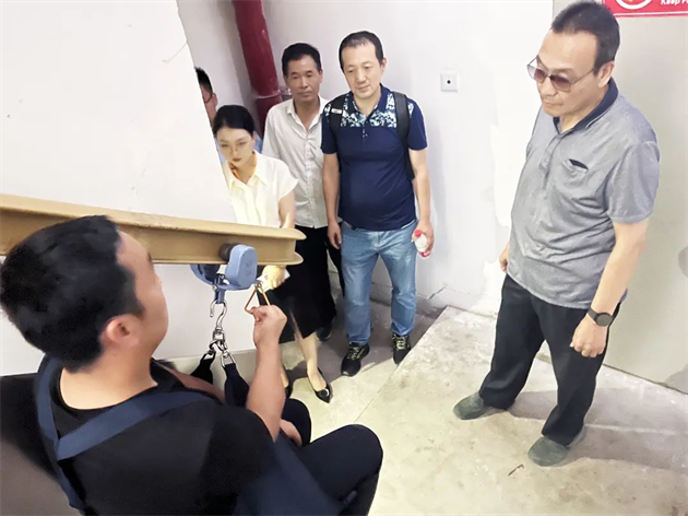 專家組重點詢問查驗了加工工藝、材料承重、樓梯道間距、軌道結構,并親身體驗了逃生效果。