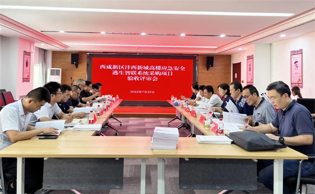7月29日,西咸新區灃西新城高樓應急安全逃生智聯系統采購項目(二期)驗收評審會召開。新城安全監管部相關負責人主持本次會議,新城安全監管部、新城釣臺街道辦事處、新城財政金融部、新城開發建設部、新城消防救援大隊有關負責人參加會議。參加會議的還有建筑、消防、安全領域三位專家、永明項目管理有限公司項目有關負責人、第三方驗收機構中檢評價技術有限公司驗收項目有關負責人、陜西咸潤實業發展有限公司項目有關負責人。