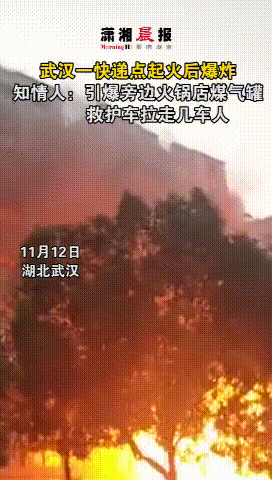 11月12日,湖北武漢洪山區(qū)一快遞收發(fā)點起火,導(dǎo)致隔壁火鍋店的煤氣罐被引爆,一排門面都被燒完。